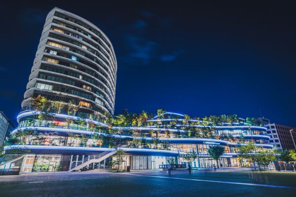 熊本交通センター一帯の市街地再開発事業として2019年9月14日にオープンした複合商業施設です。奥に見えるガラス張りのホテル棟と、手前に見える商業棟の2階部分などを担当しました。