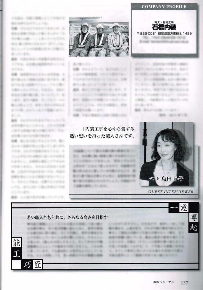 弊社の前身である石橋内装は1976年に創業し、今年でちょうど40周年となりました。ここまで来れたのは、ひとえに皆様のお支えがあったからこそだと思います。